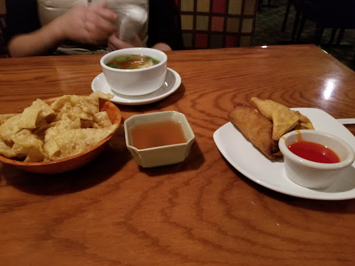 The crab Rangoon (2 cakes) were tasty but chewy, the wonton soup was average, the fried noodles were a little stale.