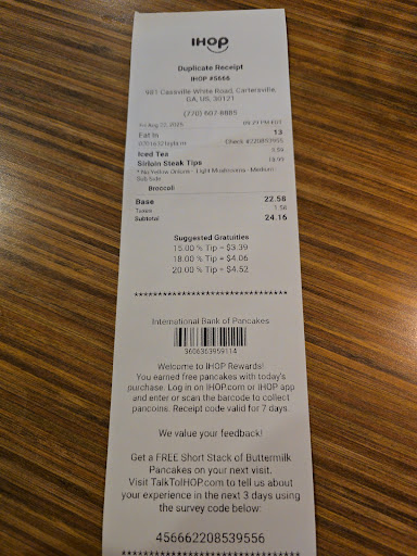 IHOP omelettes and Pancakes are some of my favorite which is this places' saving grace. There is no one manning the front counter. The people working here are entirely too slow to move when they see people standing at their front counter. I was waiting at least 5 minutes before anyone even acknowledged my presence in the store to pick up an order. Then after that they left several items out of my order including some that I paid extra for, so I had to go back in and wait again for them to acknowledge that I even existed so that I could tell them that I was missing some items. Pay for extra and they forget even the basic, if you're picking up, don't leave without...