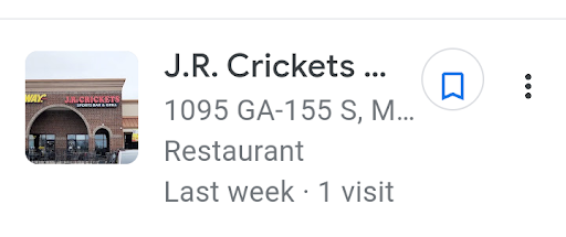 I was recently a patron with a small group at JR Crickets restaurant in McDonough, Georgia.