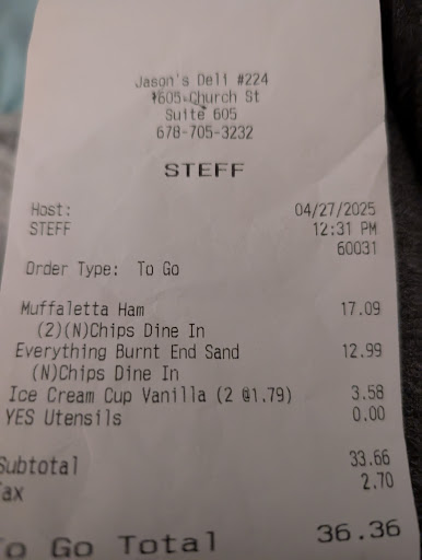 Read moreI was Jason's around 4:30 today, Saturday. The young man who took my order was very pleasant, and took the time to tell an incoming customer he would be right with him, as he was bagging my order. He even came running out to the parking lot to bring my muffins that had been left out. I was take-out, and he could have just not bothered. You know, this seems minor, but nice makes a difference. AND, the lady who made my salad did a wonderful job. Instead of the salad bar, they now have an extensive list of what can be added - just like the old salad bar. There are a couple new options not on the old bar, for a reasonable extra charge. (Except I think the pudding wasn't there 😁.) Back to the lady who fixed it - the salad was well-presented (pretty) and did not skimp. It had everything I ordered, good portions of the add-ons, etc. It 99.9% exactly as I would have made - coulda had one more beet 😋. Maybe because I was hungry that it seemed to take a long time before it was ready, but (1) both employees were multi-tasking, and (2) the salad lady was taking the time to do it right. I hope all of the employees are as nice and attentive as these two. I will be back. And I know you may think I'm someone without a life 😁, but these days, we all need a boost. I was treated right, and I want...