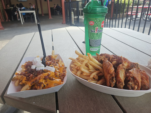 Read moreSo I'm going to do a full review on this based on the fact that we did get multiple things from this location when we visited six flags over Georgia the food was actually relatively good that Mysterio was really nice and a nice area of the park right there kind of in the middle now service all over the building they have plastered that you can save time by ordering online do not fall for that whatsoever I spent more time waiting for my online order then the people who were standing in the long line to get food overall it was good food and side note never listen to the website on what time they close it said last night they were supposed to close at 8:00 I went there about 6:45 and the doors were locked all three of the cashiers that I had the privilege to talk to we're all very glum and spoke very quietly and allowed place where you can't really hear them if you do do the pre-order on the phone make sure you have a couple rides that you want to ride before...