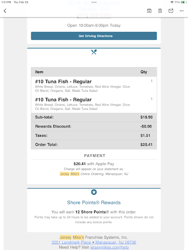 Read moreI placed a to go order on Saturday February 24,2024. My order was 2 tuna regular subs. The overall appearance of the sub seemed fine. Once I returned to my workplace to have lunch with a coworker we ate the entire sub. After we finished our lunch we returned to work, after about an hour and a half we started to get sick almost at the same time. I’m 100 percent sure it was the sub. I contacted the manager and told her what happened and her response was I don’t know how the sub made you all sick because we make the tuna fresh every morning and that was the end of the conversation. I’m sure they understand that a couple of things could’ve happened to cause two people to get sick from different households. Food not stored properly, employees not washing their hands I could go on. I also sent a message to corporate through the app no response from them at all. This store is...
