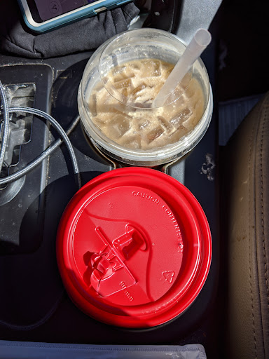 Sometime Earlier: Normally, it's fine. Today, it wasn't. I said iced coffee with cream... cream and sugar?...just cream, no sugar... Hands me black... I said, again, with cream... She hands me black with whip cream on top. Ugggg. Gave up. Tried to mix it in. The other drink had a clearly broken lid. What a mess. And they had no napkins anywhere, and when we asked, they had to go to the back to get them. Why aren't they just giving them...