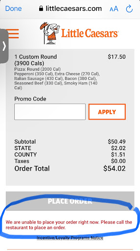 Read moreSo apparently Little Cesar’s (at least this one) believes that at 10pm they are supposed to be out the door and otw home. At least according to the two employees tonight that told me and then another lady trying to get our Hot n Readys at 9:45- that it takes time to clean up so they don’t serve after 9:40🤔So what’s the purpose of a sign that list business hours until 10 pm?! Just so people can look it up drive over wasting gas money and watch them clean up for 20 mins??? I’ve worked many places. You clean up after the store closes. Business hours are posted for a reason, so customers can plan accordingly. The part that I found exceptionally aggravating was the part how they explained it like it was common practice and we just clearly must not have understood that restaurants must be cleaned before they could go home… I mean duh, still not a reason guys. In fairness the girl was new. The manager could have said I am short staffed need to train, if that was the issue, but acting like it was normal policy (and hopefully it won’t be) is...