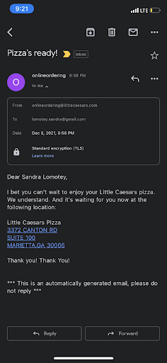 As I get out of my car as Keelinn walks out the door and brings me the order. Whan I asked "Why did it take nearly 25 minutes for a ten minute wait?"