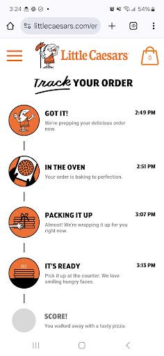 Read moreWent on a Tuesday night. Had preordered a simple pie. Got a message saying it was ready for pickup. Showed up with my phone in and and the pie was not in the pickup kiosk. I asked the young lady at the counter about my order. She said it should be coming. All while, there are about 3 or four other teenagers in the back prep area, throwing things, yelling at each other, cursing each other out. No sign of a management/authority in sight. And still no answer about where my food was.