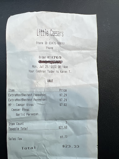 Read moreThis is the only little Caesars near my home. I am new to the area. Each time I have gone there the customer service is very horrible. Each time I go i deal with the manager. Not sure of her name but she is the one with the bad weave with diamonds on her lashes. The first encounter i waited at least 20 or more minutes for a hot and ready pizza. That was crazy to me but I was thinking maybe just maybe this is a busy night. My last encounter I didn't look at my pizza and when I finally did it was old and dry, it actually looked burnt. No I did not see the sign that said no refund. Now I can understand the policy but if I as a customer was not satisfied I really feel like I should have gotten a fresh pizza if she could clearly see that the pizza wasn't fresh. Ok once I was told there is no refund I just told myself that I just would not go back. Ok now comes today. I decided to give it another try, it's been a couple months. So I approached things differently this time I asked what kind of pizza did she have ready. She said " pepperoni and cheese. I said ok I want one of each. As I was giving her my money I asked if I could see the pizza and she told me that they don't show their food. So immediately I said as she was making change to give me " I can't see my food? I can't see what I am buying? She said "No!" Real nasty so I asked for my money back. The register was not closed and I didn't have my pizza in hand yet. She said " we don't give refunds and closed the register. Tossed my 2 pizzas on the counter and said again there are signs all around that says we don't give refunds. I told her every time I come here it's always something with you. She told me that she never seen me in her life. I told her the customer service with her is always bad. She said to me " why do you keep coming back then. I told her that I wanted to support the business bcuz its in my neighborhood. I did let her know that was going to complain and I will keep coming back til she is gone. I will say this. I am calling the news media and I will let all my family and friends know about her and to not support this store. Whoever the owner is they should be ashamed for this woman to even be representing them or their business the way that she does. She is reflection of them and it's so sad. My pizzas are old. I have photos and if I gave call the police I will get my money back. Your thinking all of this for $10.86? Yes its my $10.86 and I work hard for it. Hell I could have gone to pizza hut right...