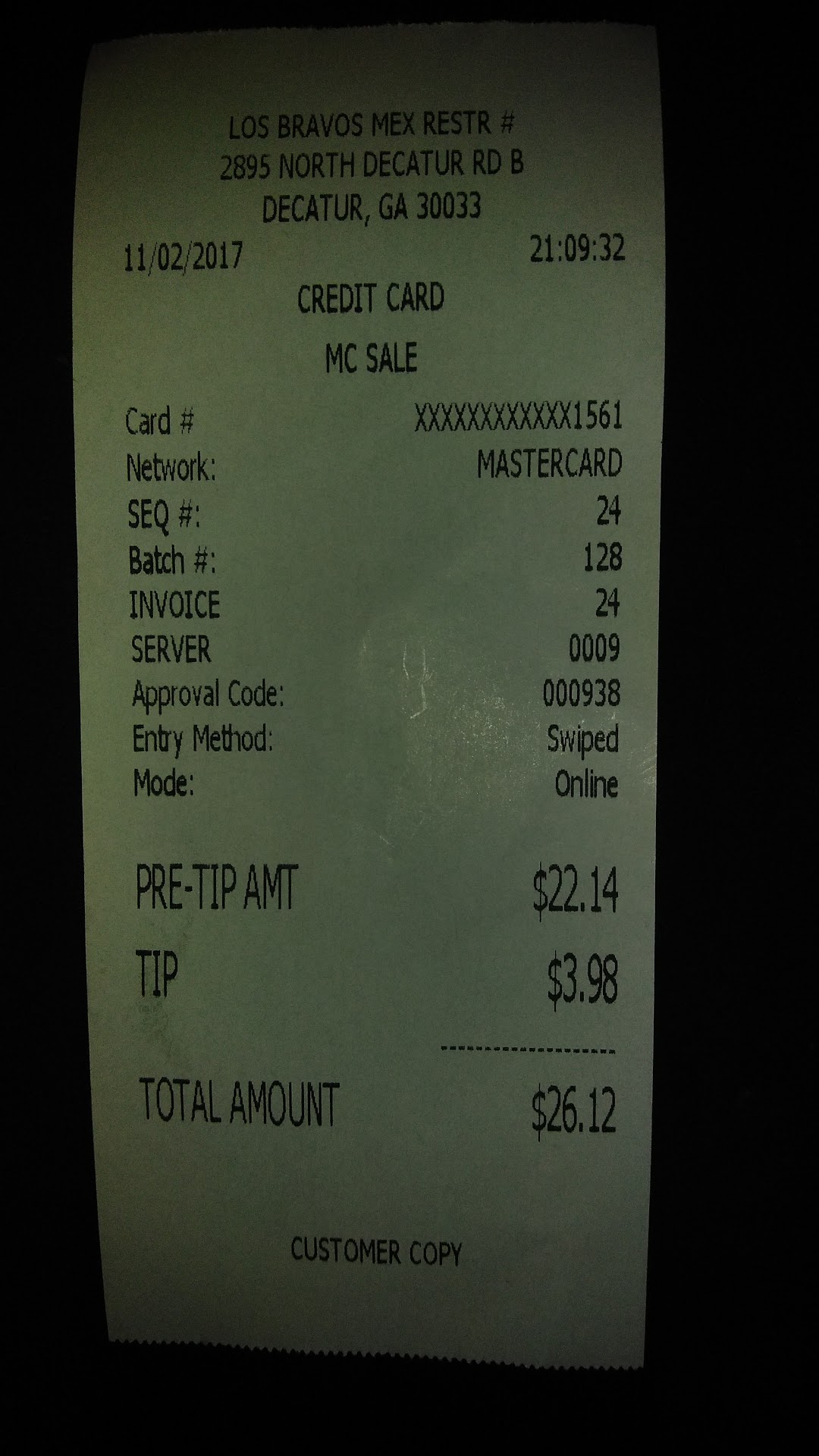 Would have ordered another beer but didn’t because a) was never asked, despite an empty glass, and b) really just wanted to get out at that point. Steak burrito that had been ordered came out as chicken. Waited on server forever again to come back and give us the check. Told him that the steak burrito was chicken and he tried to act like it was steak somehow?!?!? Asked him to just take it off the bill since it wasn’t eaten and we really just wanted to leave since everything was sooooo slow. He then brings check but walks away before I could give him a card even though he knew we wanted to leave. Thankfully the many, many more minutes it took him to come back allowed us to see that the small draft beer I ordered was instead a large texas margarita on the bill, and never ordered or delivered, for almost $20. Had to then wait to get that corrected and another bill.