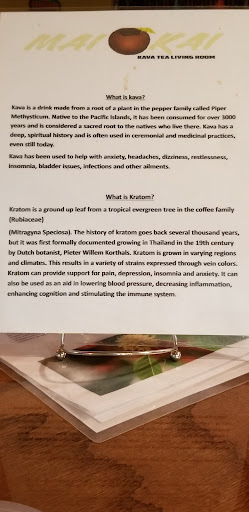 Read moreI am from the Clearwater area of Florida and was up vacationing with my girlfriend and some friends in Unicoi State Park and Mai Kai Kava Tea Living Room was just what we needed to find. The owners have extensive knowledge of kava and kratom and serve them up just how we like. Their hospitality and quality of both Kratom and kava are out of this world. Mai Kai is definitely doing good things for good people on a daily. They also told my friends and I about a few local sites to go check out and their recommendation was beautiful. Thank you Mai Kai for your hospitality and knowledge. Bula, from Shane, Brandie, Paul, James...