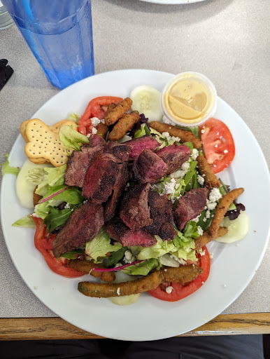 Read moreI visited the Mallery Street Cafe on the second day of my vacation to St. Simons Island based on a good review score here on Google. It's really close to all of the village shops, conveniently located, and we had no trouble finding parking. This is going to sound like hyperbole, but I had the single greatest salad I've ever had in my life. The "Black and Blue Salad", which is a NY Strip steak (I ordered mine medium rare and blackened), bleu cheese, and fried green beans over a mixed greens salad with cucumber and tomato. The steak was cooked and seasoned PERFECTLY. There was just the right amount of bleu cheese, and the citrus vinaigrette was an amazing accompaniment. I'm serious in saying this would be my death row meal. Every bite of steak accompanied by one of the fried green beans was a perfect bite. The batter that they coat and fry the beans in is DELICIOUS. If you don't order this incredible salad, at the very least get a side of the beans. My family got breakfast foods and all said they loved them, too. The pancakes were big and fluffy. All of the portions were big and everything is reasonably priced. I thought about the black and bleu salad all week and had to go back again for my last day of vacation. It was my favorite meal on the island, and I was able to have it twice, and can happily report my second experience was consistent with my first. It still stands as the best salad I've ever had in my life, and it was my favorite meal...