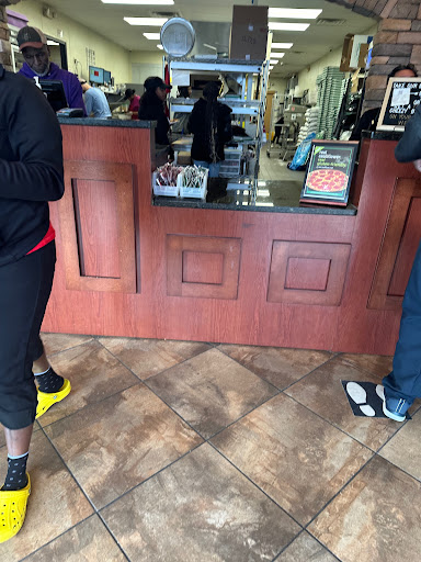 My neighborhood pizza store. About a mile away, so it's convenient to pick up orders. The pizza is usually ready in under 15 minutes, unless they are hosting a big event. Most of the time, the food tastes as expected. But during a recent visit, I was disappointed with the appearance of the Medium Deluxe that I ordered. Someone threw presentation out the window! The onions were congregated in one spot (almost in a circle), the green peppers were cut in huge disc-shaped slices (laziness). Truthfully, if I hadn't been so starved after a long day at work, I'd have refused it. It was a hot mess--literally. As for atmosphere, most people don't eat in; they take the food and go. They have flat screens on, and while fairly clean, the atmosphere wouldn't impress your date.