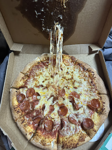 I know, I know,...pizza places are usually staffed by teens/twenties, and all the kids are nice. BUT they are frustrated, because they are overwhelmed by the FREAKING HORRIBLE app/ordering system, and lack an experienced leader that can deal with the MANY problems that arise. In short. I order 2 pizzas,carryout, Friday @6:55 pm, the app said the order would be done at 7:06pm. I didn't actually believe it....but then the APP ORDER TRACKING said the order was "ready for pickup" at 7:06pm. Sweet (so I thought)... I went to the store....and the lobby had about 10 people in it that obviously had been waiting.... Oh yay! Finally at 7:48pm I get 2 pizzas. The 2-topping has 1 topping, both were short the garlic sauce cups (noticed that when I got home) and crust toppers. The girl, (first day working there) says they can remake it.....LOL, like hell I'd wait around for another pizza to be made!!! Whoever the owner/General/District manager is dropping the ball. The online- ordering system, (which they have to shut down because of order overload) is a total joke for 2022. This location struggles to fulfill the orders and it's the FAULT OF UPPER MANAGEMENT. The app over promises what the store can actually deliver, and that is a cardinal sin of customer service. P.S. there is a Domino's just...