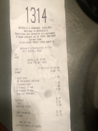 Read moreNo one would physically take an order inside and was made to use the kiosk. A total of 9 customers in store trying to order, some were older people who didn't understand the kiosk and needed employee help placing their orders. Cashier was finally made to come up front only to walk away from the register leaving it open in front of customers with cash in the drawer. A manager finally came up front to give food and found the cash drawer sitting open, only took 10 minutes with the drawer wide open with no employees around. The 4 people ahead of me who received their food were given wrong items and missing items and had to wait before anyone would come to the front. My order was wrong and I was missing items, as were the people ahead of me. Total time spent waiting on my order was around 20 minutes with an additional 15 minutes to have my order fixed. The manager, an older woman maybe in her late 50s, smelled of alcohol and could barely form coherent sentences and she was the one up front attempting to fix orders. UPDATE:: Ordered mcribs on the app tonight and paid on the app. Went to pick up my food and was told they only had 1 mcrib left but they would substitute my other 4 with chicken nuggets..... how can you substitute a mcrib with a 10 piece? Not even equal value. This location needs shut down after the attitude I got when I was displeased with their 'fix' I ordered 5 mcribs, you don't have them, that's fine. But do not try to rob your customers. Should've just canceled the order when they saw it come in and started the refund process. Thanks for wasting my...