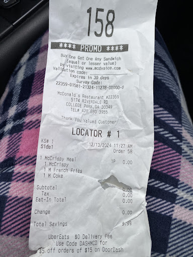 So this has by far been the best McDonald's experience I've ever had by far, EVER! I live nowhere near the College Park location but I will travel all the way over there because that has been the best experience I've ever had at any McDonald's location. I love to use the McDonald's app and when I used it, I choose to dine in once I got there. First and foremost I was greeted friendly, warmly so pleasantly by a young man Aaron. Aaron was very nice and cordial, he took my order and once I paid like always and usual he was trying to give my cup, I told him first I wanted to go wash my hands. After that I met Aaron soon as I finish washing my hands, he handed me my cup from one hand, in the other hand was my food on a tray. Aaron asked me where I wanted to sit, I told him then went to get my drink. Aaron then went and put my tray where I wanted to sit and stayed there with my food till I was done fixing my drink. That has never happened to me at any McDonald's, EVER! I thought that was some real good customer service. I then asked Aaron did they have any lemons for me tea, he said yes and of course brought them to me. Like I said, I will go out of my way to go to that location, it is the best, hands down. The McDonald's in Union City is right across the street from my job and it is very convenient for me to stop there and get something and using the app definitely helps, but I will never ever visit that location EVER AGAIN! The managers there do not even know how the app works. I used the app to pick up my food in the drive thru and the manager made me come in. I was so furious when she made me do that. I WILL NEVER EVER VISIT THE UNION CITY MCDONALD'S EVER AGAIN, NEVER. They will never get another penny from me. I will go out of my way to visit another location or just do without. So my money will always go to College Park on Riverdale Road,...