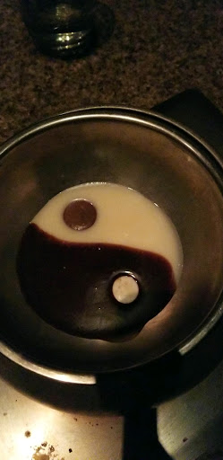 So by this time it's nearly 6:45 and we're told that our chocolate course "is on the way soon." This ensued another nearly 20 minute wait for it to actually arrive. The dippers consisted of four each of the brownie, blondie, banana slices, pound cake and four very tiny slivers of the sugar waffle as well as eight or so equally tiny slivers of strawberry. Again, the portions were quite underwhelming. Before the server left, my wife asked for more of the waffles, brownie and blondie. We finished the meager portion of dippers(basically two each of everything for each of us) pretty quickly and then proceeded to wait for the extra dippers to arrive. This didn't occur for nearly another 20 minutes or more, during which time the chocolate became super heated, charred to the sides of the bowl despite diligent stirring and consequently very thin and runny. We left after paying at 8:05 PM...three hours after being seated.