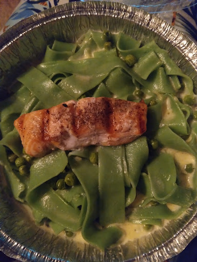 Read moreI placed an online order, and it was very disappointing to say the least. I ordered spinach based Fettuccine with salmon, green peas, and extra sauce which they got correct except for the extra sauce (which is a $3.50 upcharge) and paid $6 for a sliver of underseasoned salmon (pictured) and undercooked peas. The pasta, however, was delicious and perfectly al dente. I also ordered the Fritti Spinach and Artichoke Dip antipasti, which is described as four cheese ravioli lightly deep fried and toasted crostini served with artichokes, spinach creamy dip, and spicy tomato sauce, only to receive two 1-cup containers of salty tomato sauce and the spinach creamy dip with no toasted ravioli or crostini that was supposedly part of the appetizer and 2 old yeast rolls (also pictured). I'm honestly quite appalled by this experience because the dine-in experience I had was great, yet this one fell so short. I'm still working on getting that partial refund through Doordash for not receiving the appetizer. I do not suggest ordering online, but I suppose the dine-in experience is worth...