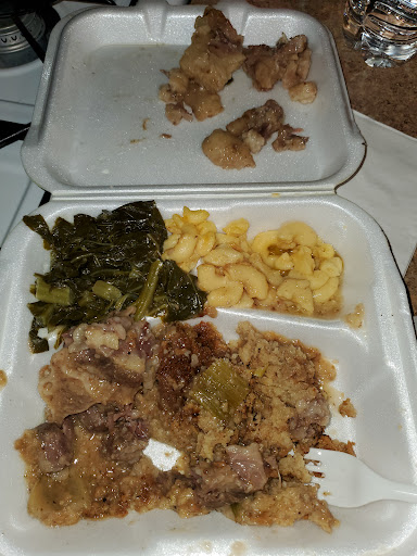 Just moved to Decatur in September of 23 and had been riding pass this place finally decided to stop in for dinner and I was starving. Well first walking in it was kinda shocking because it was empty and chairs was on the tables so if you wanted to sit you could not. We were not welcomed when we walked in you could tell it is a neighborhood restaurant. The old lady there was standing at the beginning of the food line and could see we were confused on how the process worked but never said a word to us. Matter of fact no one said a word as if we were regulars. A lot of people from work came in. As I started down the food line the food didn't look good at all the chicken looked dry as if it had been there all day and the ox tails looked disgusting the turkey wings were white with white gravy nothing looked good the sides looked even worse the mash potatoes were piled up like a mountain and looked discolored I guess from the air. So just to support I got a 3 piece white snack and got my daughter a 3 piece dark snack my husband got the fish shrimp dinner and the fish is cooked to order (I guess unless they just didn't have any when we ordered so they had to cook his fish and shrimp) the fish was over cooked and the shrimp were the trick breaded shrimp. (All bread no shrimp ones) he had rice and mac n cheese and he didn't like it at. But he ate it. The chick was like gas station chicken been there so long when you eat it the grease sit on your tongue.the chicken gave - If I was drunk coming from a club and need something to eat. Would I go back? NO. When I got home the chicken was lukewarm and the roll as ok I had to soak the chicken in hot sauce. My daughter had hers and said don't ever bring that to here ever again. I told her don't worry I won't. At least I can say I supported the business but I won't be back. The customer service was a little better after I started talking with the staff out front the staff that came from the back was just plain rude. I work in customer service so I'm very big on customer service! I can't find one place in Georgia that sells good food! I wish...