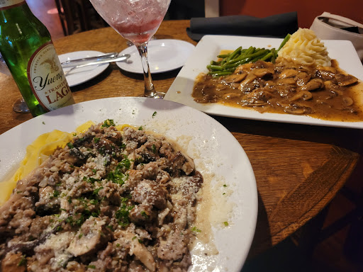 We decided to go here after being unable to get in to either of our regular restaurants in Helen. Now we wish we had gone elsewhere. The meal started off great! Quick service, drinks and bread and butter. Next we decided to order the crab cakes ( only 3 for $14 ). They were very good and we were happy. Next we ordered our main course which for me was a very HiGH PRICED 14 ounce Rib Eye (medium rare as always) with baked potato and green beans (and no salad )...$34.00!!!!!! My wife ordered the Eggplant Parmesan...$16 which was supposed to come with spaghetti noodles which the waitress said was actually fettuccine noodles...but she got ZITI noodles....hmmm? So we made sure to let the waitress know to be sure to space the appetizer and the main course so that we would not have our appetizer still on our plates when the main entrees came....which happens alot. So my wife's entree was a good portion and was the right temperature but...it was very bland. No flavor. She said it needed some salt. As for my Rib Eye...well this is where it went BAD!! First...for $34.00 I expect a GREAT STEAK. This steak was not only THIN...it was overcooked! It came out WELL DONE. So after waiting 10 minutes or so for our waitress to come back to check on us..which my wife had to wave to her to get her to come, instead of taking the whole plate back she takes the steak back to the kitchen. So now I have no steak...just a partially eaten baked potato and green beans. So thinking I'll have a new steak pretty quick...I wait a few minutes..about 10 really. No steak. So I start eating my potato and beans. So after 15 minutes...the waitress comes and says my steak will be right out. 10 minutes later a kitchen employee or maybe the chef brings me the steak. Ok so now I am just about done with my potato and beans...since I WAS hungry...I cut the steak and yea its medium rare. But I'm so upset that its taken this long..I cant eat. So my wife was unable to finish her meal since she asked for salt and pepper and it NEVER made it to our table. She only had two bites. So it cost us $73.00 for this subpar meal. We thought we would be pleased with this place since it had a nice atmosphere, and there was live music, but in the end..we just wanted to leave. I have eaten all over the country since I worked for professional race teams for 22 years.....and I have eaten in tourist towns...a lot. This meal was no where near worth what we paid. I did not take photos since it was not worth the time. We were very disappointed. I get better service and a great, large ,thick bone-in RibEye at LONGHORN for much less. We wont...