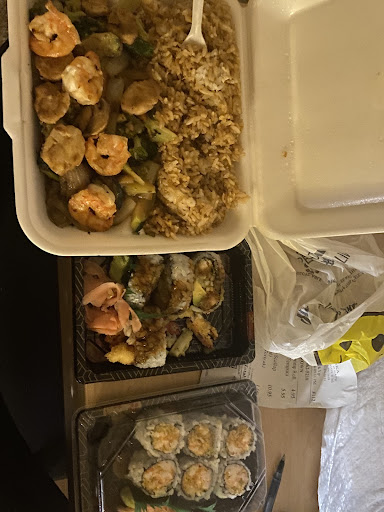 The sushi is top notch, with so many varieties to choose from, and they will customize it for you too. They were able to cater to my mushroom allergy (I am always so grateful for those who understand what severe allergies can do). Their Crab Rangoon is simply the best I have ever had, with such a sweet flavor to it. We collectively had the Chicken and Steak hibachi, Steak and Shrimp hibachi, and Salmon Teriyaki meals. All were great. We also had a spicy crap roll and a dragon roll. Both were amazing. The Crab Rangoon was the cherry on top of the cake, so to speak. Each meal was between $11-15, and it does come out on styrofoam plates which is as a bit strange to me, but not a deal breaker. I would not recommend this place for a large group, as the dining area is limited to roughly 6-8 tables that seat 4. It is small inside, but the food...