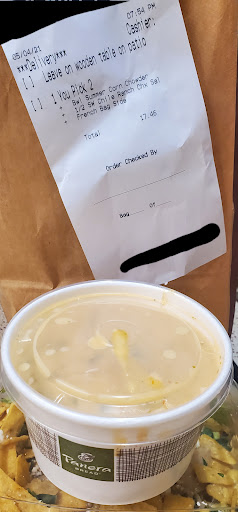 Read moreOrdered rapid pick up. Waited 30 minutes and perhaps more as I’m still waiting. Update: The workers served it off the screen and I received the email saying it was ready when it was not. I waited another five minutes when we asked again. And finally our food was handed to us and we were told to have a nice day….except they forgot the soup. And when we asked, “Oh yeah because we’re out of French Onion so we just didn’t put it in there.” So instead of telling me and offering to swap they were going to let me walk out empty handed. So I wound up swapping the soup. Ok, that’s fine. But my coffee that I paid extra for to have syrup I w want made. They said it’s self service since it’s a hot coffee. I tried to explain that I paid extra for the syrup and they still told me to go up front. So I do and make my own coffee and have to approach the front counter worked and ask again for the flavor syrup that I paid for. She said they don’t do it up front but she’s go ask, she brought the bottle and was helpful. Then we have the issue of my boyfriends iced coffee, which they also said is self service despite add ons. We had to walk around the counter Six times to get all of our order.