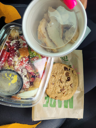 This last time, which was today, it was slow, with 6 employees working in the back, and no one ahead of me or after me, but my order was almost completely botched. They had ran out of chips for my three orders and also ran out of romaine for my salad order, but I understand that happens. However, out of the three apples they gave me, two were all bruised and nearly rotten⊠What made me leave a 2 star review is because I ordered a WHOLE grilled cheese and I donât know if the person who made the sandwich didnât read the order correctly, but she made some kind of chicken sandwich, and it was HALF.