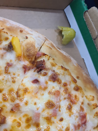 I ordered a pizza, garlic knots, cookie, extra pizza sauce, and extra pepperocinis. My order requests to go to the carport door, it’s printed on the order. The delivery guy, goes to the wrong door. I have to go around and tell him to come to the other door, as per on the order. I confirm that the extra peppers and sauce were there. Yes, they're in the box, he confirms. I go inside and check, but they are not in the boxes, oh, and where is the cookie?