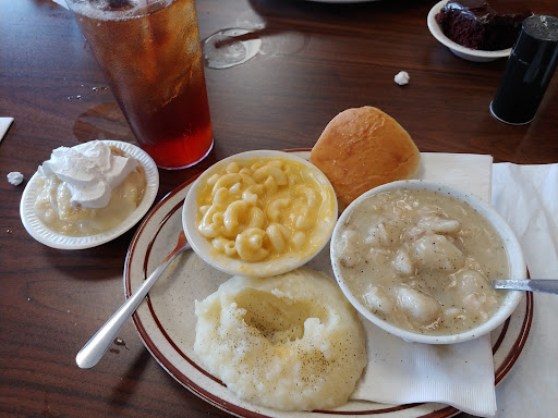 Read moreThis restuarant was our choice for a late arrival to a cabin in the area. The cabin hand a brochure for this place and they still open. We decided to eat here. The place looked nice enough on the inside and outside and really looked like good ol country cooking kinda place. We wohld be totally wrong. Multiple orders were placed, from chicken and dumplings to steak and a burger. Best thing order was a fried chicken tenders meal and a kids meal. Steak was a thin piece of something that looked like it came from Wal-Mart, A1 sauce was asked for and the first bottle poured out like someone had put water in the bottle to stretch it out. It was literally water which was horrible and ruined the steak. Burger was not a fresh patty bit something that was pre patted and frozen. Cooked it was nothing far from a hockey puck. French fries were cold. The other meal was chicken and dumplings this was far from homemade chicken and dumplings, tasted like something that came from a Campbell's can. Resturant was totally empty except for one other family eating we were sat right behind them. They didn't speak the entire time. The whole experience was eerie and strange. Waitress was nice enough but I would never eat there again. McDonald's would have been a...