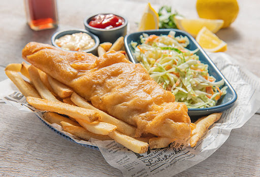 The fish and chips order came with one piece of fried cod. It was heavily battered so naturally it was swimming in oil. The batter they used had absolutely no flavor or seasoning. And if you've ever had cod before, it's an extremely light flavored fish with a more firm texture than other fish varieties. So it was just flavorless.