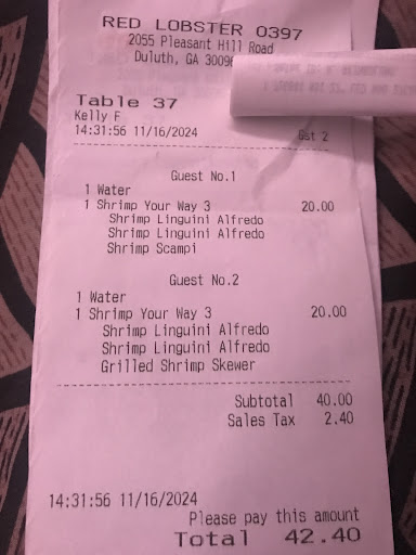 Read moreHorrible , absolutely horrible experience on the night of July 10th at red lobster in pleasant hill. In one word terrible. ordered four steaks, out of them three was not in desired consistensy. medium became medium rare and what not. On top of that, they changed one steak for us, and brought in an even worse one. at the end of the day we could not even eat three steak at all out of four.Ordered pasta and it came out sooo bad that 6 of us could not even eat it. Four people foood came early like 15 mins early, and three people kept waiting for their food for atleast 15 mins altho we came as a family as a group. The wednesday lobster surf and turf, never ever try it please. this cannot be the texture of a lobster neither should it taste like that. It was so blend that it felt like raw. At one point, we had to ask who is the chef and does he even know how to cook. and guess what, among all these things happeninh there was a lady âstandingâ manager who did not show up for even one time and never even addressed our concern even a bit. She was just standing at the front podium looking at her phone the entire time knowing that we (6 adults) customer are having such a terrible mind bogling experience. The restaurant was almost empty so none of the people working was even that busy. This is by far, the most horrible experience we ever had in any restaurants in the entire georgia and we all live here for more than 10 plus years. What a waste of money(more than $250), what a waste of a family dinner and what a scam they are playing with customers. I would like to report that particular manager and that particular person who cooked our food( cant believe it can be real chef) to the high officials and urge them not to rip off people by serving these kind of horrible food and give these kind of cheapeat and poor...