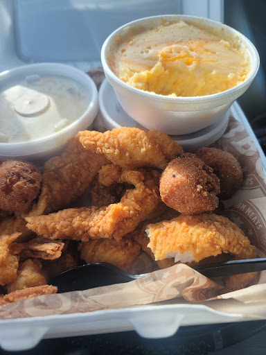 Ā Ā Ā Read morePretty good barbeque. They have four sauces, hot, sweet, vinegar, and mustard sauce. All were pretty good. (Not super thick sauce, but suited to the meats served.) We got the fried pickles for appetizer and they were fried correctly, crispy on the outside and the pickle was still good on the inside. We git the loaded baked potato- it was good. All the fixins included shredded cheese on top of the pulled pork and then butter and sour cream on the side. Husband got the whole hog (?) platter which included pulled pork, ribs and two smoked chicken thighs as well as Brunswick stew and macaroni and cheese. I was disappointed in the macaroni and cheese (I thought it was like stoffers brand macaroni) but the Brunswick stew is pretty stellar. The Tea is strong and sweet, and they do offer alcoholic options. The staff were prompt and service was quick. All total we spent 40 minutes there for lunch. The dining area was very clean and well lit and spaces between the tables were just right. (Not sure if this is a result of the social distancing though). For four people with drinks and appetizers it was 60 dollars. Reasonably priced fir allbthe...