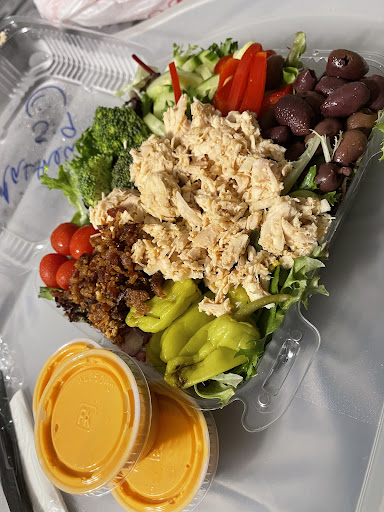 The salad was cold and fresh, which really saved this review from being a one star. Some of the items I would have cut to make smaller, but after tasting it, I didnāt mind the big chunks so much. It was appealing, appropriately sized and priced. They have a fair amount of options and things to accompany your salad, maybe could have more but itās fair for my Lunch visit.