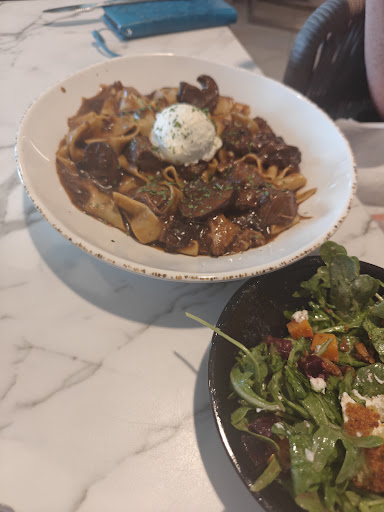 Our Hampton Inn didn't have a restaurant, so looking for a place to eat on New Years Day was a challenge. We opted for the Shore Restaurant at the Marriott right up the street. My wife had the beet/peach salad, which came out with canned peaches and beets, which made it just average. My Smashburger was decent bar food, and my salad option was huge. No complaints there.