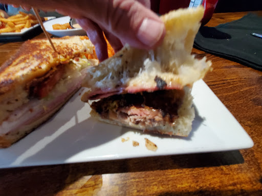 My buddy had the Cuban and also, great choice. A Cuban sandwich has to be the perfect blend of meats and cheese and then the sauerkraut and pickles bring the tang, and it either hits or doesn't, well this one hit it right on the head. I can tell by looking at a Cuban it's going to be good or not, and this one looked good and tasted better; the ciabatta bread really complmented the sandwich.