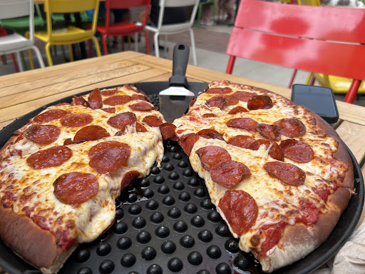 Read moreReally cute area! But as soon as my friend and I went into the restaurant, we were harassed by a staff member with Down syndrome. Apparently his idea of being a “door greeter” (as another member called him) was to cat call me and my friend. We did our best to ignore him, but then he proceeded to come up and continue to make us both uncomfortable. No other employees said anything about his behavior. We figured we might as well try the food since we were there. Can’t say it was anything special. The only thing that stood out to me was the burnt cheese on the sides of the slices. Overall, extremely disappointed and would not comeback on chance I would be harassed by that employee again. Please train your staff how to...