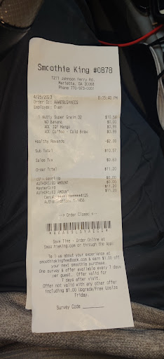 Read moreI went to this Smoothie King on Johnson Ferry Road and was truly dissatisfied. I sat in the line for the drive through for ten minutes with only two cars ahead of me. Finally, I went into the store. This was a big mistake. I placed my order. The Smoothie was extremely watery. I took it back to the counter and instead of making it over, he added ice. I could not taste any of the pineapple, spinach, or any of the other I ingredients for that matter. It was so bland. He should have remade my smoothie. I was too tired to care at that point. I was also too hot. They should adjust the thermostat also! I will NEVER come back to this store. This store is terribly understaffed. Whoever is managing this store aught to be ashamed for the way this store is being overseen. Two people can not adequately serve the volume of people going through the drive through and the inside area. They had two people on a...