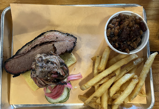 I had lunch here a few days ago. It wasnāt too bad. The BBQ isnāt my taste and thatās fine, some people like different flavors and styles. I give them 4 stars as the place was clean and they have a 100 health score as of writing this. Itās a very small place. You go in and I believe thereās two long common seat benches on the right and a couple two seat tables. So you will probably be eating side by side with other people. They have a couple small tables outside also. They have a self serve drink machine and tea area. My wife and I had the two meat plate. I wish we had stopped by earlier as they serve what they have till they run out. Itās clearly posted on their web site and I believe in the article in the FCN which drew me here. If you come here I would be there at opening. The meat is heavier on smoke than what I like, but some people like that. Also the chicken is off the bone served loose. The brisket had more fat than I would like. Sides available were almost out so I got the beans and chips. The plate portions are normal plus I guess. Some people made it sound like they give you half a chicken and brisket lol. Itās not that much. The cost for two meats, sides and two drinks was $46 so a little on the higher side. I wish them the best. The owner seems real nice and I hope...