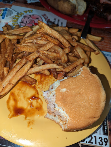 Southern Pit definitely has our approval. I am a fan of another barbecue restaurant chain in Griffin and planned to stop by there that night. It was late and raining. When Southern Pit popped up on my selection here on GoogleMaps, I decided to give it a try since it was closer to my drive home. The food is a little expensive for my taste, but reasonable for barbecue. They have a lot to choose from. There are some less expensive options to choose from. I did not go inside the restaurant. I stayed out in their foyer area where they have seating accommodations and a window to order from for to go orders. I wasn’t sure what I should choose to take home to my family. I listened to a couple of people make their orders. One of them was seated nearby when he started talking to me about the food on the menu. He had seen me looking at it for a while. He was very polite, kind, and a proper gentleman. He was just trying to be a nice helpful Southerner. He told me about what he was taking home to his wife and kids. He recommended a few things. I ended up ordering what he had (the small version) and a larger portion for my son. I tried the beef pit fries and my son had the pork pit fries. My husband had the pork plate. He loved the Brunswick Stew that came with it. His only complaint was that they did not put enough sauce on it. I didn’t order extra as I didn’t know the menu or service well enough to ask. He ended up giving his leftovers to my son to eat the next day with some BBQ sauce I had in the fridge. That’s just not the same. I will know to ask for enough or add more in the future. It worked out okay. There was a ton leftover as the portions are huge. I had leftovers with my small pit fries and gave them to my son to finish off that night. The coleslaw is really good. I like how fine the cabbage is cut and it’s just sweet enough. I ordered a small blackberry cobbler for later. I have not had any for years. It was the best cobbler that I’ve had since I’ve been living in Georgia so far. Most places only serve peach cobbler (of course) if they do serve cobbler at all. It was an excellent mix of crusty and gooey. Not too mushy like the other place’s peach cobbler. The wait staff that served me recommended that I buy a gallon of tea as it was cheaper than purchasing 3 individual to-go teas. I didn’t know if we had anything at home to drink made at the time. We like our sweet tea. She provided 3 cups of ice with lids and straws and provided a drink carrier. It was very appealing to me that she would offer a cheaper version when some places only care about the money. The service was fast and friendly. She was ready to take my order, I didn’t wait long for food, they prepared my bag quickly and efficiently. There was nothing missing when I got home. Yes, I tip the lady at the window who serves me. It’s the appropriate thing to do. Her tip was well deserved. I hope that people do this as well and realize that they deserve tips even if there’s a partition between you when placing your order at restaurants like this. What I ordered for 3 people was around $35 with the gallon of tea and the one desert. That’s not too bad considering paying $20-25 on fast food. It’s also very comparative to the fast food version of BBQ down the road. I will be choosing Southern Pit over them from now on. Although we live nearly 8-miles from there, the food traveled well. I was worried that the fries wouldn’t be good by the time I got home, but they were great.