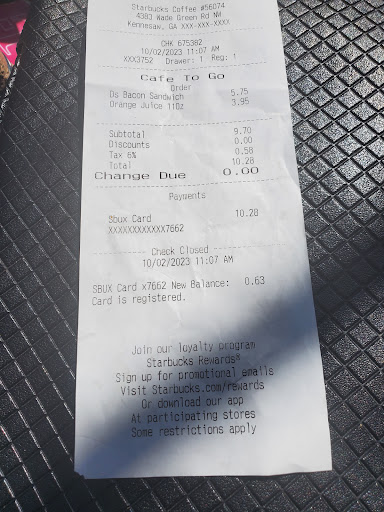 If you're looking for the hippest architecture and digital cafe experience, look no further than this Starbucks on Wade Green road. The staff is some of the friendliest most engaging Starbucks employees I have ever met. I would recommend ordering drinks food or coffee online so that you are able to pick it up either through drive-thru or in person. Yesterday I had ordered a drink online and when I arrived to pick it up I noticed that it didn't have the same taste that it normally does. One of the baristas informed me that according to the way I chose to have my specialty coffee through the online ordering, had perplexed them because they had never seen someone order the type of drink that I had ordered. When I told them I wanted the drink the same way that I always order it they happily allowed me to keep or discard the first drink, then they made me a new one according to a requirements and selections I usually order from Starbucks. This Starbucks location is one of the newest in this small area that I live. The architecture reminds me of artistic construction that is not only pleasing to the eye but comfortable for any environment depending on if you have kids or not. I would recommend this Starbucks on Wade Green road before I would recommend another Starbucks located within 1 mi on the same road. The Up Scale nouveau furniture is an added bonus for the Vastly Open air architecture throughout the interior lobby. I look forward to going to this location as many times as I financially can afford to drive my own car there. I hope to see the rest...