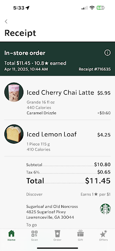 Read moreI went in to Starbucks 4825 Sugarloaf Pkwy just to take a mental break. Promo said that if you order a hot tea or coffee and dine in, you can get a free refill. I asked the young lady if my drink qualified for the promo and confirmed the requirements to get the free refill and placed my order. Honey citrus mint tea w/extra mint and classic pump and oatmeal with extra water and agave w/ brown sugar. The oatmeal was very stiff bc there wasn't enough water and there was a qtr spoonful of dry oats at the top. I used my muscles to mix everything together and the agave helped to moisten the oatmeal from being so stiff. I consumed my items while playing approx 8 games of Candy Crush Solitaire until I noticed a fly on the windowsill right by my face. I went up to the counter get my refill and leave. A different young lady assisted me. She stated that my drink didn't qualify and that I could get another hot tea or coffee. I was not interested in another drink so I asked if they could honor what I was previously told during my initial order. The lady said, No, and asked if I wanted something else. I got a qualifying tea drink refill but had to pay a difference from my refill to add lemonade and honey blend just to get the same drink. I paid but also asked for the manager just to advise of my experience...it was the same young lady that rung me up. Had I known that I would've been misinformed, my oatmeal was going to stick to the roof of my mouth, I was going to dine in with a fly on a dusty windowsill and I would have to pay extra...I would've just went to Dunkin Donuts and mediated in my car in silence. SMH. My mental break turned in to mild frustration but in spite of other events,...