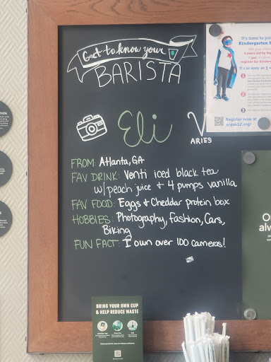 I liked the cool chalkboard highlighting their barista, Eli. Super cool!