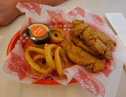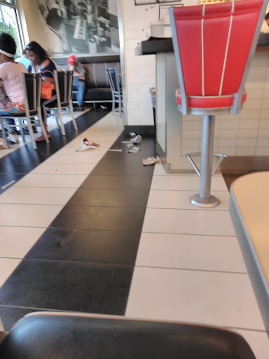 Read moreNormally, this Steak' n Shake is very good and has wonderful servers. On the day I visited with my husband and a friend, we visited around 1:45 and they were not crowded. There were many empty seats, but lots of people working behind the counter. Apparently our waitress was new, I ordered the guacamole burger, she knew nothing about this type burger and had to ask the cook. It is no longer available, not a problem I ordered a Swiss'n cheese, mushroom with a garlic sauce. My husband and friend ordered double or triple burgers. All burgers were dry and over cooked. My plate had a whitish cup on the side I asked our waitress what the item was, but she didn't know. Our dining party assumed it was the garlic sauce, it wad nothing more than greasy mayonnaise with a garlic substance in it, I pushed it the side. We had to get the attention of our waitress for napkins and again had to wave our empty glasses for refills....keep in mind, they were not crowded nor was the drive thru busy. Our waitress was mopping during our visit and slipped and fell flat on he back, she lay there for a moment, but I sprung up to help, the other employees only looked and turned away. I did my best to help her up and once she was up she said she was OK. It was obvious she was new, she kept looking at the manager as if she was going to get fired, but she continued to mop. I marched to the manager and told him the girl had taken a hard fall while mopping, he just looked at me and turned around and returned to overcooking burgers. Our check was placed on the table before her fall & my friend ordered a vanilla shake, we had decided then she would get a poor tip, but after the fall and the way management turned their eyes, we left a very generous tip, although we had to ask for the shake, which was somewhat melted. Such poor, poor management, but not all bad employees. We...