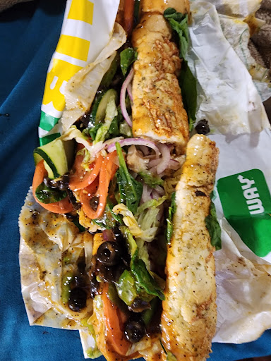 Read moreExtreeeeemely slow service. They put way too much mayo and mustard on their sandwiches. They were drowning in condiments. It makes it very difficult to eat a sandwich that is slippery. I asked for a 6 inch chicken teriyaki and the lady staryed cutting the bread (which was underbaked) got sidetracked and only cut the top half and then started making a footlong chicken teriyaki. After waiting 10 minutes in line already (only 1 customer ahead) I didn't argue over it and let her continue . Then she put so much chicken on my sandwich that it fell apart and I had to eat it with a fork! Usually more food wouldn't be an issue for some people, but when the sandwich can't even be eaten properly, it becomes annoying. The lady making our sandwiches can't hear or doesn't listen. We asked for light mayo and mustard, but she just piled it on and we had to scrape it off. Workers seemed disorganized and distracted. There was old food (hard bread pieces) and dead flies on the window sill for the tables next to the door. The Subway in Wal-Mart isn't much faster but at least I could hold...