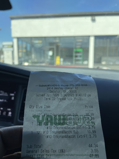 Read moreBefore entering I noticed that the parking lot was empty but the open sign was on. Upon entering there were no employees in site. After a few minutes a young man came from the back but his demeanor was lackadaisical. I placed my order and requested that the bread be toasted. The roll was placed in the oven unopened so I asked for the roll to be opened to toast the inside which was done reluctantly. I chose mozzarella cheese along with other items. A coupon was used to pay for my order (6 inch for $3.99) which should have been a little over $4.00. Well, the total was $5.16. To avoid any additional challenges I paid then looked at the receipt. I was charged .79 for the cheese! Isn't cheese included with the price of the sub? Years ago this location's health inspection was ALWAYS in the 90's. Now it's 82! I said all of this to get to the main point. The prices are way up, the quality, services and employee standards are way down. ( Pants hanging down with underwear showing.) This needs to improve fast, quick and in a hurry! I believe in supporting small businesses in the area but only if and when there are quality services in all areas. In addition there has also been times when I visited and they had no oregano. Go across the street to Kroger...