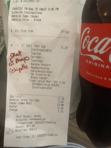 I actually pulled up around probably 12:00 p.m. 3 weeks ago to get a sandwich. There was no one inside and there was a gentleman outside that was smoking a cigarette. So I waited inside for about 3 or 4 minutes. No one ever came up front, but as I walked to my car I turned around and I saw that the gentleman who was smoking a cigarette was the worker who never acknowledged me to say I'm on a break. I'll be in in a minute. Minute never said anything. However, the fact that he was smoking a cigarette didn't seem to wash his hands. Made me say I would never eat at this subways as long as I live there's too many to go to. They're individually owned but the one I went to I would never ever eat there again. By the way, I left without ordering anything because he never came inside until after I got in my car and I literally sat in my car for 5 minutes and watched in disbelief as he went behind the counter. It made me wonder about the cleanliness. That was the third or fourth time since I've moved in this area that I've been in that Subway and it always feels like the workers are unkept, but he was...