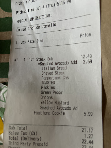 Read moreEvery pick-up order we have made has been made incorrectly for at least the past year. And every is not an exaggeration. This last order we paid or extra meat and didn't get it. I ordered a spicy Italian and they put ham on it with barely any salami or pepperoni (there is no ham on the spicy italian), they put two tomatoes on the whole sandwich, there was barely any lettuce, they didn't put all the ordered toppings. They also hadn't even started our order because they were trying to close over an hour early. The bacon on a separate item was ice cold and so were the meatballs on the meatball sub. If you plan on...
