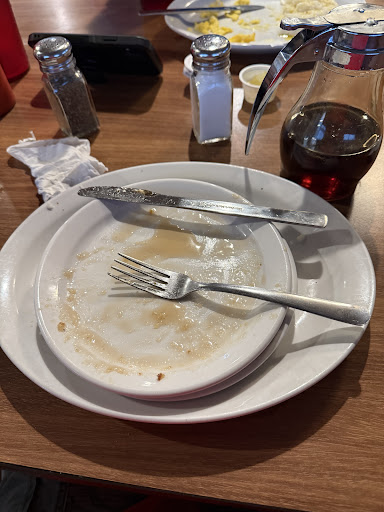 So good that we went back for breakfast again the next day with our family. We had Miss Dee both times as well. Super sweet. There are a ton of options on the menu as well. All the staff were kind and you really got a close neighborhood vibe. You can tell they have their regulars that they know by face or name. We ordered and it came out so quickly and piping hot. I ordered the build your own omelette with ham,sausage, and avocado. Probably one of the best and biggest ones I've ever had. It also came with a side and I got the blue berry pancakes. So yummy. My friend got the country fried steak biscuit and it was almost as big as the plate. The gravy was a flavorful sausage gravy with a fluffy huge biscuit. The meat was tender. Also came with a side and he got the plain pancakes. Next day we brought the rest of our family. My friend had the same meal bc he loved it so much. I changed it up and got the chicken eggs benedict.bomb! The hollandaise sauce was creamy and not overly lemony. The eggs perfectly poached and runny. I got my side as extra crispy hash browns and they were great. Another person got the Belgian waffle with fresh fruit. Another person got the Nutella and banana crepes. Best crepe I've ever had. Not chewy at all. And someone else got an omelette with sausage and mushrooms. Everyone literally cleaned our plates. Best part of everything was the price. All our meals came with more than enough food and nothing was over $10. I'd highly recommend and I promise you won't be disappointed. Next time we need to come back for something besides breakfast but that will be hard when we know how...