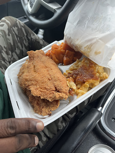 Out of 5 this place has got to be a 1! While me and my lady was in there ordering our food, one of the cooks walked out of the kitchen and went outside to cut up with his friends! The guy taking the order told him he needed to drop a couple of wings so he came back in after giving his buddies a couple of pounds and not even washing his hands, to drop the chicken! Feeling Leary I then went on to order my 2pc whiting and the order taker said to me that we donât have anymore whiting , they are gone to get more now but we have catfish which was $18.99 for 2 pcs compared to 10.99 for the whiting which I could see that was a move to upsell me the more expensive meal! Ok our order was made and we sat, and sat, and sat! By this point we had sat about 45 mins and still no one had come with the whiting fish nor was our order ready yet! After about an hour we still hadnât gotten out order so I asked the guy how long and he said not long bc the size of the wings he makes sure they are well done!!! Hmmmm! So after twiddling my thumbs a bit our order was up! So we grabbed it and went to the car to see if our meal was edible! Upon opening the top the smell was ok! Now the taste test, I bit off a corner of the fish and it was well seasoned but after looking down in my plate there was so much fish grease that you might have thought it was gravy! After biting into the yams , I could not taste them bc they were microwaved so long and so hot, that steam was coming from my mouth and burnt my tongue! Then a scoop of Mac n cheese and oh wow, this mess was bland tasted like hard cheddar and card board! And by this point still no one had come with the whiting! Sorry for writing a book but this meal was a waisted $30 something and no we...