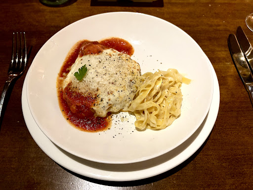 Read moreWe stayed at The Cloisters Sea Island and our last dinner was the best - Tavola. On the main lobby level with a romantic seating area overlooking one of their gorgeous, landscaped courtyard gardens. The concierge booked our table for two at 7 pm (thank you). The host and manager greeted us and we were quickly seated on the quiet dimly lit garden terrace (indoor) dining room. Our server was superb and had just the right amount of checking. He was helpful with our wine order and entrees. We opted for their warm Olive bread and Balsamic vinegar dip as our appetizer - wonderful warm Italian flavors. For dinner we both opted for two Tavola fresh Chicken Parmigiana with breaded chicken breast, Pomodoro, and Fettuccini Alfredo - it was delicious and our best dinner during our whole stay. For desert we had an assortment of Sorbet which capped off a fantastic dinner experience. Next stay at The Cloister's Sea Island Tavola will be our first dinner...