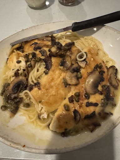 As for the food, the portions were generous, but the flavors were underwhelming. The crab cakes lacked seasoning, and I had to add lemon to the sauce just to give them some flavor. The chicken piccata was dry and bland, though the lemon sauce helped a little. The noodles were just plain boiled with no seasoning or olive oil to enhance them.