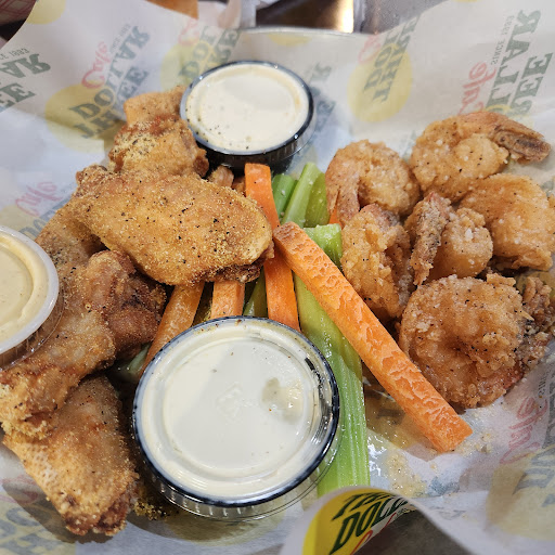 Food- When the food came out it was good. The kids all had the Hangover burger. They said it was pretty good. My sister had the blackend chicken sandwich and me and my bro-in law had wings. I also got shrimp with mine. Everything was good, except the fries. The fries had no salt and probably could have been cooked about 3 more minutes.